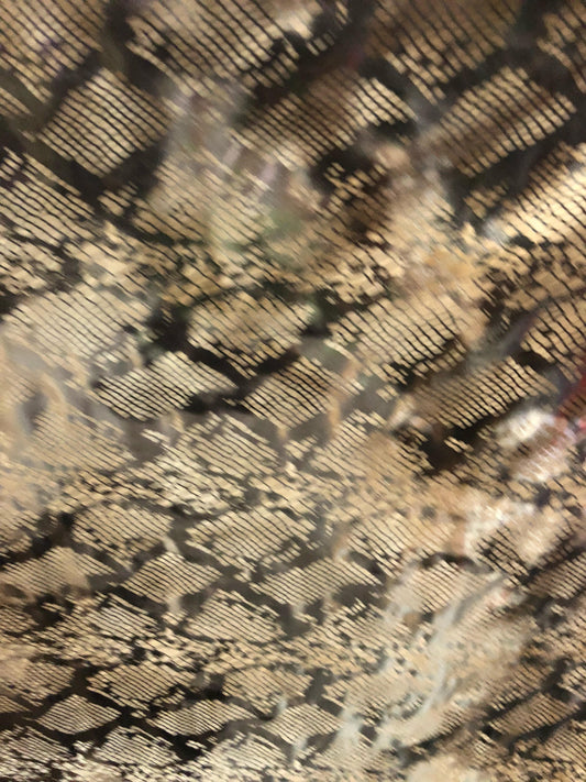 New metallic snake design on spandex base 4 way stretch 58/60" Sold by the YD. ships worldwide from Los Angeles California USA
