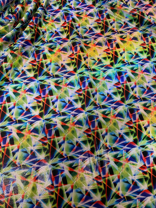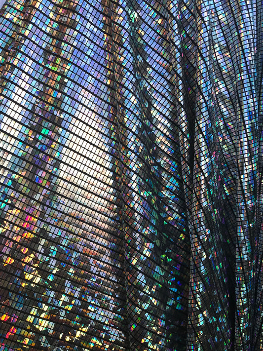 New metallic spandex mini rectangular hologram design 4way stretch 58/60" Sold by the YD. Ships worldwide from Los Angeles CA USA