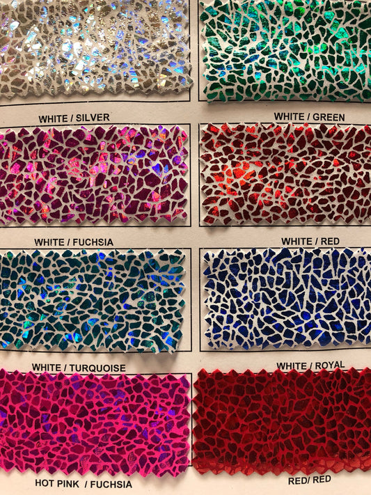 New nylon spandex reptil design with iridescent clear ilusión foil 4way stretch 58/60" Sold by the YD. Ships worldwide from Los Angeles CA.
