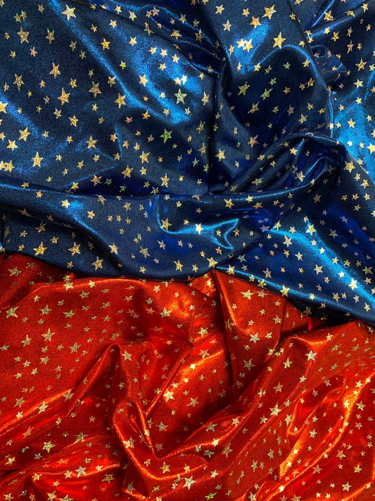 New nylon spandex stars design with Holo oil effect 4way stretch 58/60" Sold by the YD. Ships worldwide from Los Ángeles California USA.