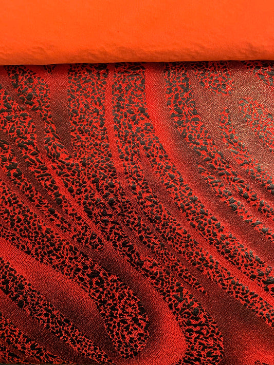 New tornado fire design with foggy foil heavy nylon spandex 4way stretch 58/60" Sold by the YD. Ships worldwide from Los Angeles California.