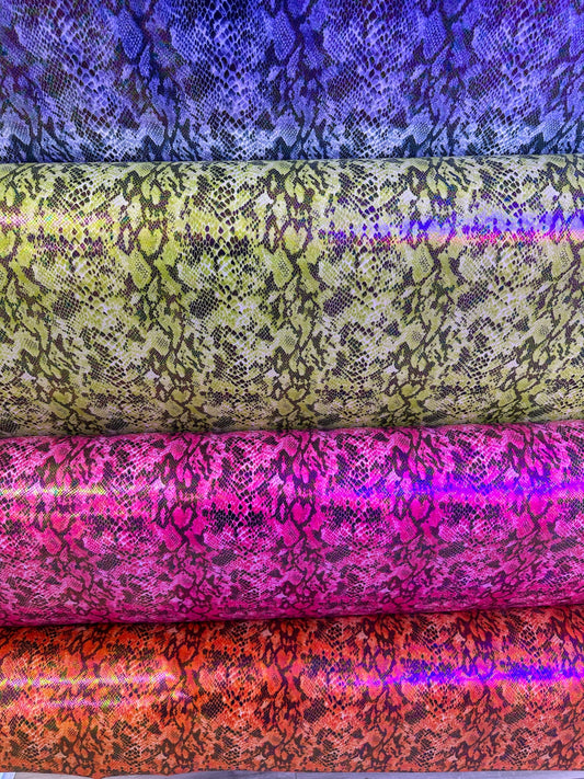 Animal print iridescent snake hologram foil metallic 4way stretch 58/60" Sold by the YD. Ships worldwide from Los Angeles California USA.