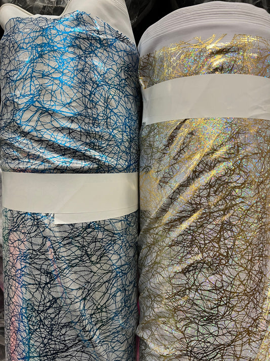 New Modern Pollock abstract design hologram metallic nylon spandex 4-way stretch 58/60” Sold by the YD. Ships Worldwide from Los Angeles CA