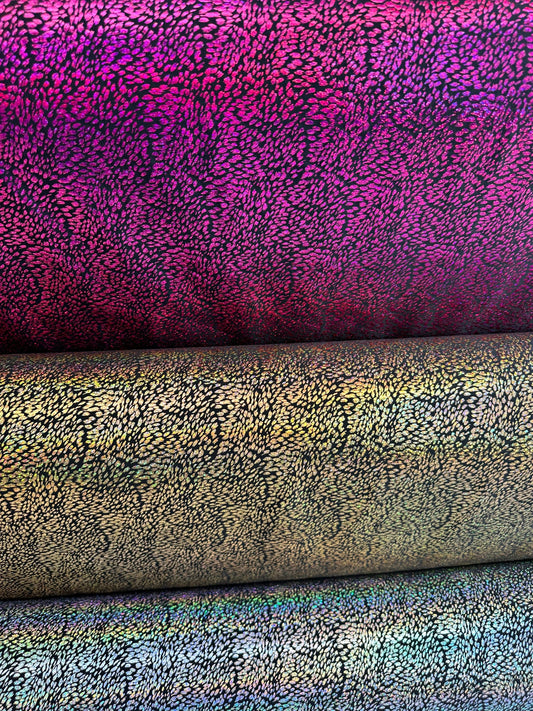 New Iridescent reptile design hologram metallic nylon spandex 4-way stretch 58/60” Sold by the YD. Ships worldwide from L.A