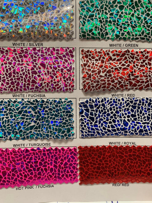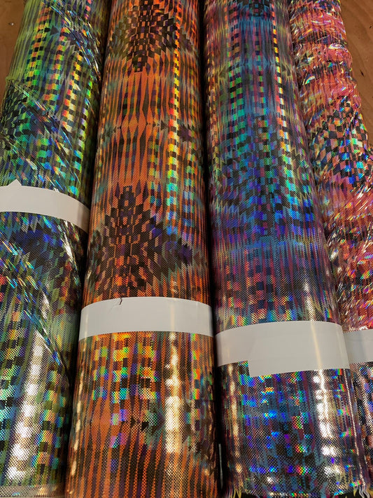 New disco cobra design hologram foil on nylon spandex 4way stretch 58/60" Sold by the YD. Ships worldwide from Los Angeles CA USA