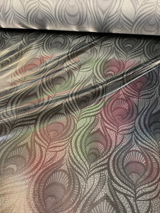 New peacock feather design nylon spandex 4 way stretch 58/60" Sold by the yd. Ships worldwide from Los Angeles California USA