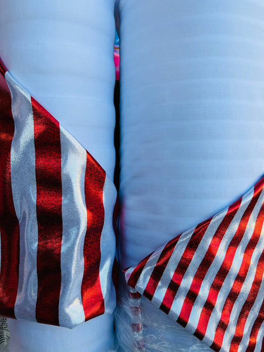 Metallic stripe nylon spandex 4way Stretch with foggy foil all over 58/60” Sold by the yd. Ships worldwide from Los Angeles California USA.