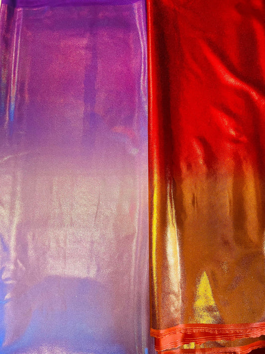 New Ombré design all over foil two tone hologram foil 4way stretch 58/60” Sold by the YD. Ships worldwide from Los Angeles California USA