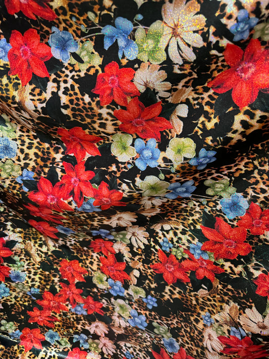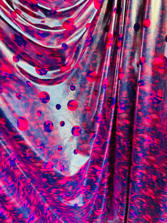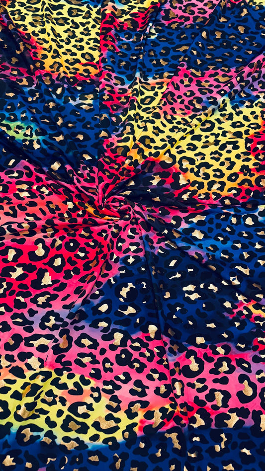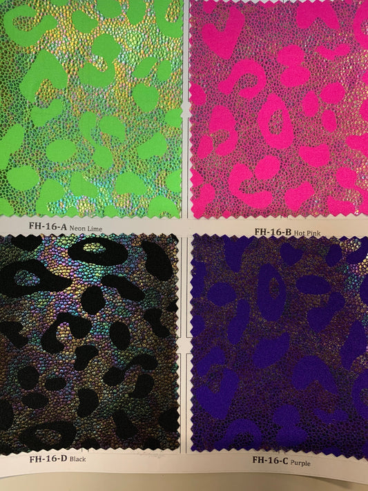 New Illusion leopard design with Iridescent foil heavy nylon spandex 4-way stretch 58/60” Sold by the YD. Ships worldwide from Los Angeles.
