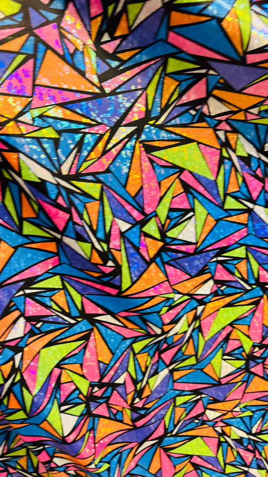 NEW Modern Geometric design Multicolor on hologram Shattered Glass nylon spandex 4way stretch 58/60" Sold by the YD. Ships worldwide