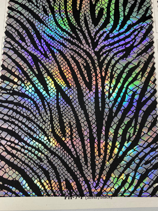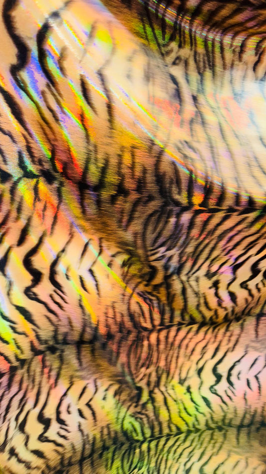 New Exotic zebra design hologram poly spandex medium weight 4-way stretch 58/60” Sold by the YD. Ships Worldwide from Los Angeles California