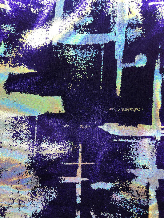 Abstract digital design purple multi metallic iridescent nylon spandex 4-way stretch 58/60” High quality fabrics by AlexLAFabrics