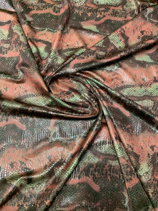 Anaconda snake design nylon spandex with clear foil 4way stretch 58/60" Sold by the YD. Ships worldwide from Los Angeles California USA.
