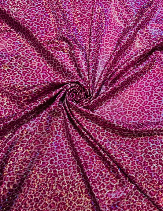Wild Cheetah design on shattered glass hologram metallic nylon spandex 4-way stretch 58/60”