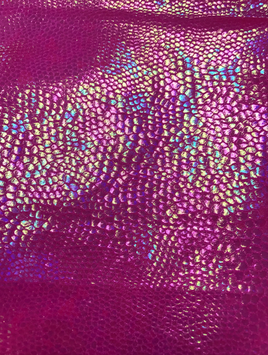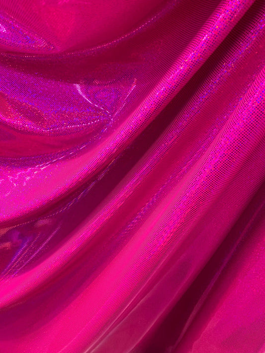 Hologram metallic dots hot pink fushia nylon spandex 4way stretch 58/60" Sold by the YD. Ships worldwide from Los Angeles California USA