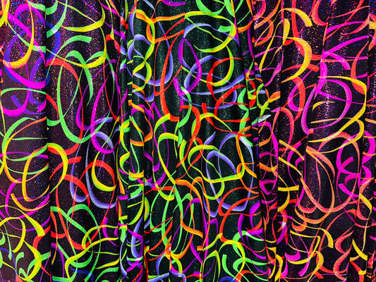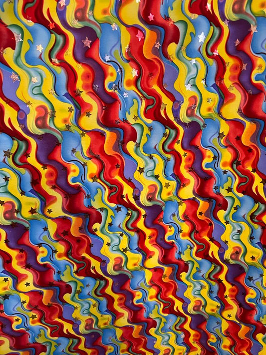 New Modern Abstract design multicolor on hologram metallic nylon spandex 4-way stretch