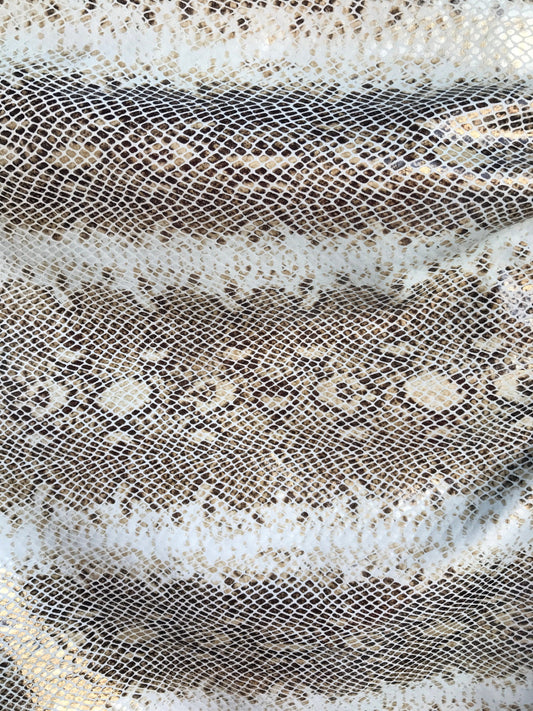 Snake print metallic nylon spandex 4way Stretch 58/60" Sold by the YD. Ships worldwide from Los Angeles California USA
