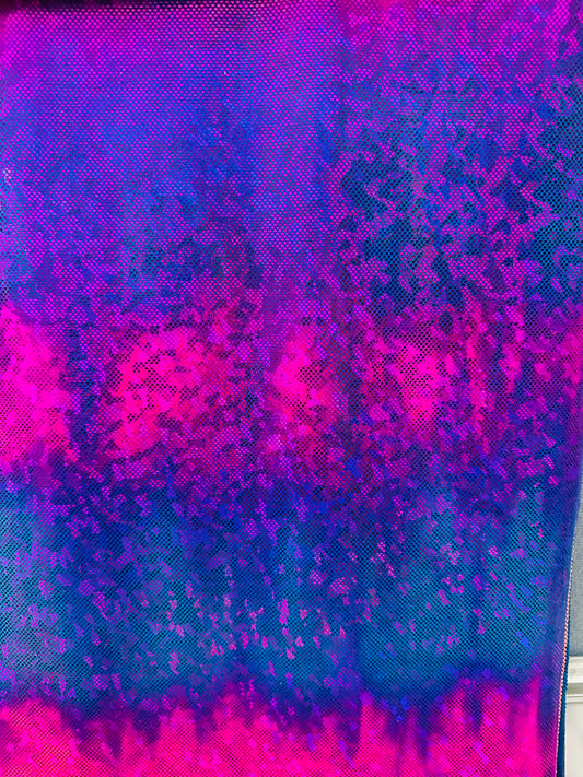 New Luxury tie dye shattered glass hologram metallic nylon spandex 4-way stretch high quality of spandex fabric for Active & dance wear.