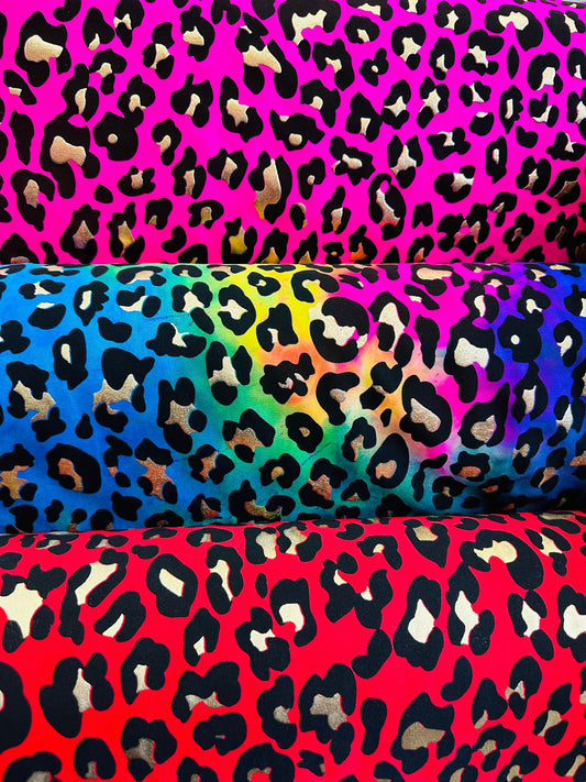 Exotic Leopard design metallic tie dye nylon spandex 4-way stretch 58/60” Sold by the YD. Ships worldwide from Los Angeles California USA