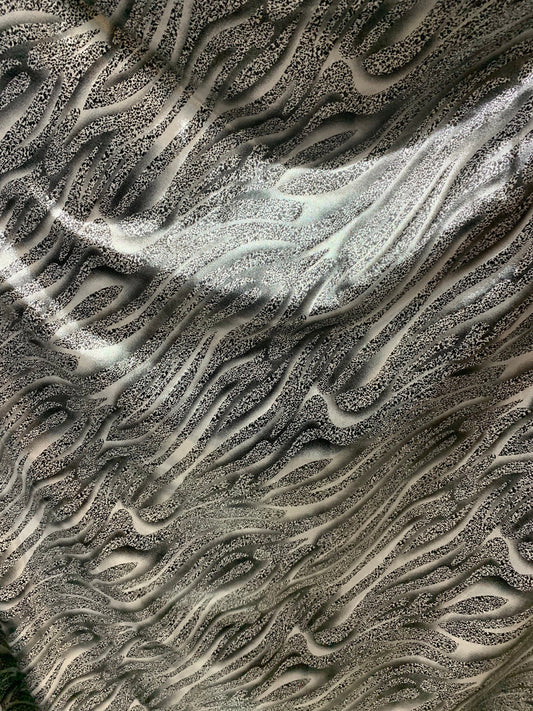 New swirl design metallic nylon spandex with double foil white/silver/black 4-way stretch 58/60" Sold by the YD. Ships worldwide from L.A CA