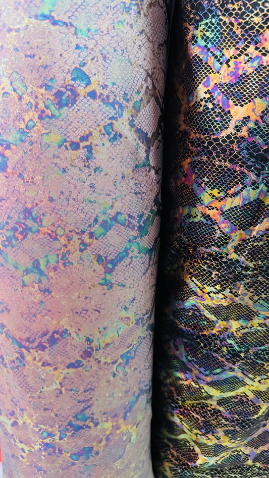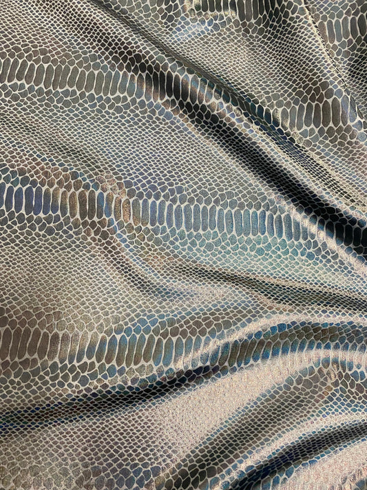 Exotic Iridescent snake skin design on metallic nylon spandex 4-way stretch 58/60” High quality fabrics by AlexLAFabrics