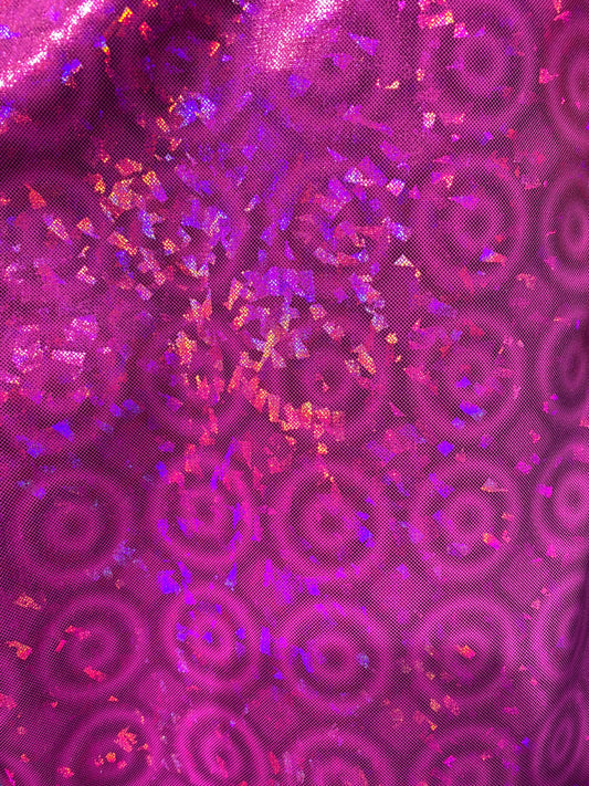 New hologram 3D disco design shattered glass hot pink metallic nylon spandex 4-way stretch 58/60” Sold by the YD. Ships worldwide from L.A