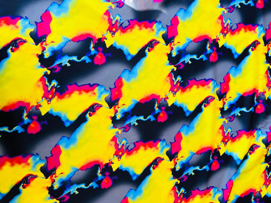 New Magma abstract design luxury nylon spandex 4-way stretch 58/60” Sold by the YD. Yellow/Multicolor Ships worldwide from Los Angeles Cal