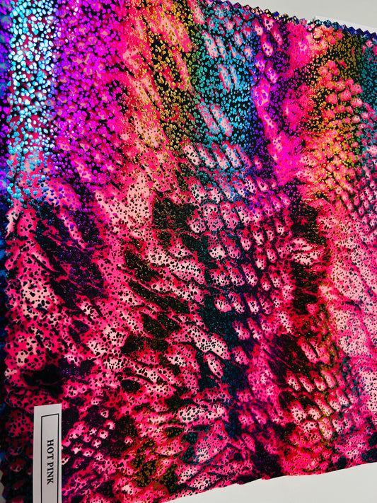 New Exotic Snake Safari design hologram metallic Nylon spandex 4-way stretch 58/60” Sold by the YD. Ships Worldwide from Los Angeles CA