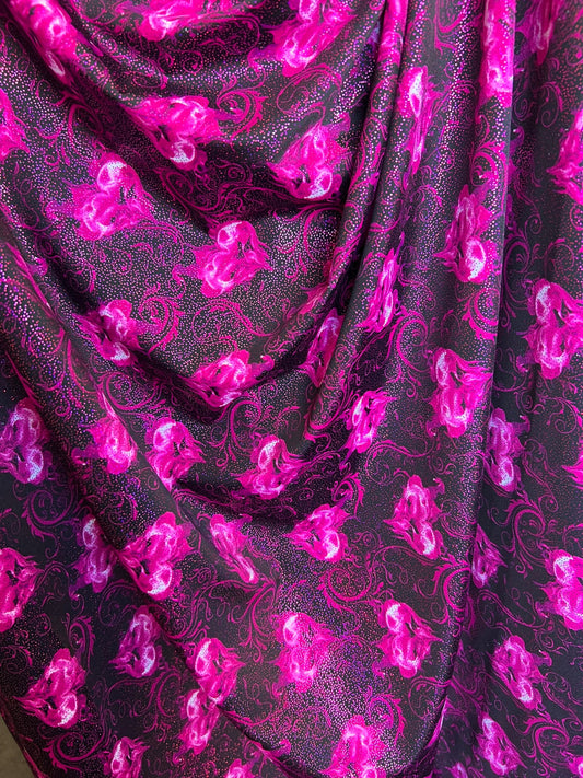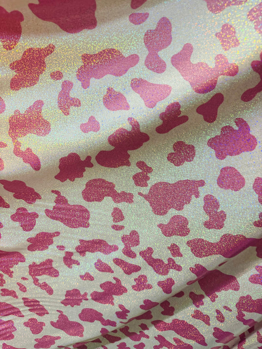 Exotic Cow Design on hologram metallic foggy foil hologram metallic nylon spandex 4-way stretch 58/60” Ships worldwide from Los Angeles CA
