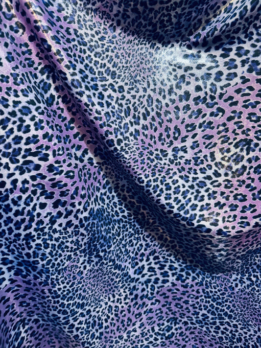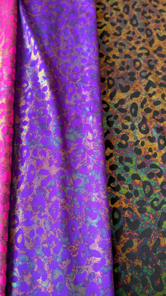 New exotic iridescent leopard design hologram nylon spandex 4-way stretch 58/60” Sold by the YD. Ships worldwide from Los Ángeles California