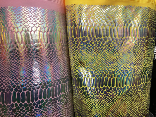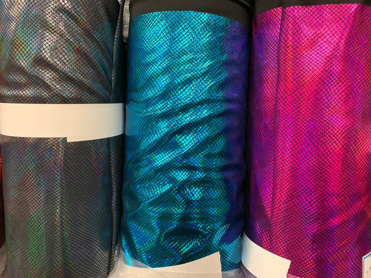 New dragon scales iridescent hologram foil on nylon spandex 4way stretch 58/60" Sold by the YD. Ships worldwide from Los Angeles California.