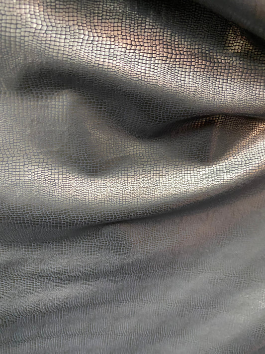 New nylon spandex animal print with iridescent foil 4way Stretch 58/60" Sold by the YD. Ships worldwide from Los Angeles California USA.