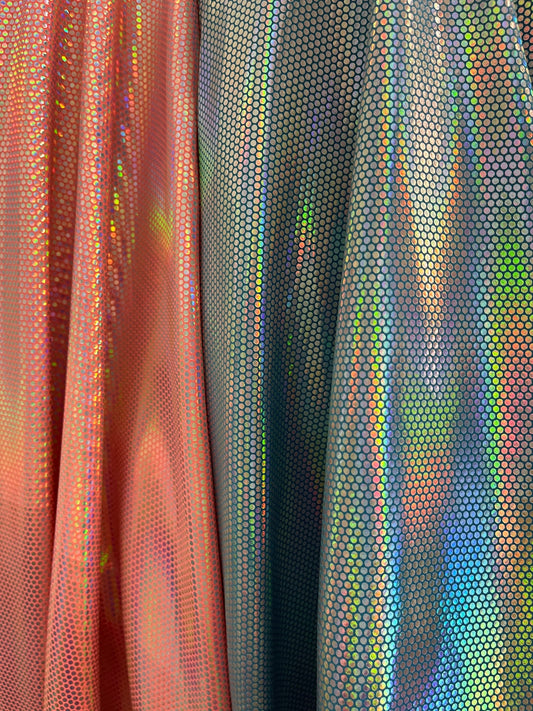 New Honeycomb design iridescent metallic nylon spandex 4-way stretch 58/60” Sold by the YD. Ships Worldwide from Los Angeles California USA.