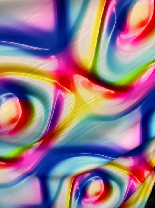 New abstract design rainbow color print on best quality of Nylon Spandex 4-way stretch 58/60” Sold by the YD. Ships Worldwide from L.A CA