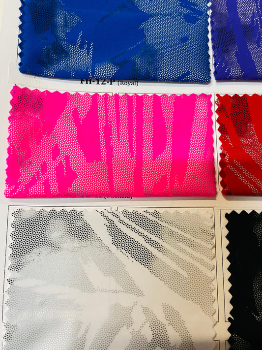 New nylon hologram spandex splatter double foil 4way Stretch 58/60" Sold by the YD. Ships worldwide from Los Angeles California USA.