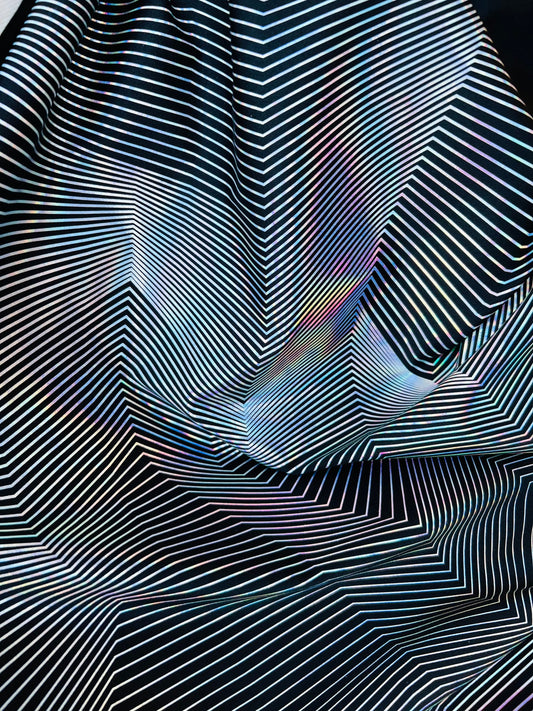 New Digital Geometric design hologram nylon spandex 4-way stretch 58/60” Sold by the YD. Ships Worldwide from Los Angeles California USA.