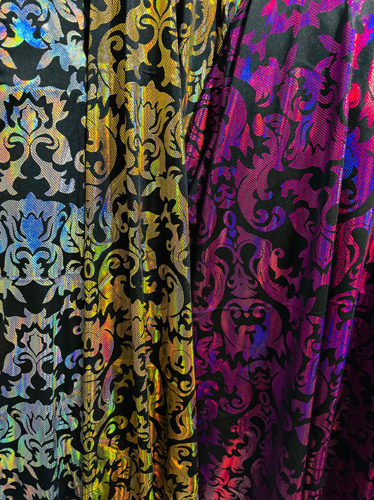 Luxury Damascus design hologram metallic nylon spandex 4-way stretch 58/60” High quality fabrics by AlexLAFabrics