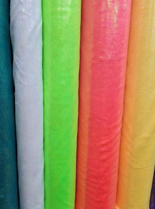 New Iridescent cotton candy snake design with clear ilusión foil 4way stretch 58/60" Sold by the YD. Ships worldwide from Los Angeles CA USA