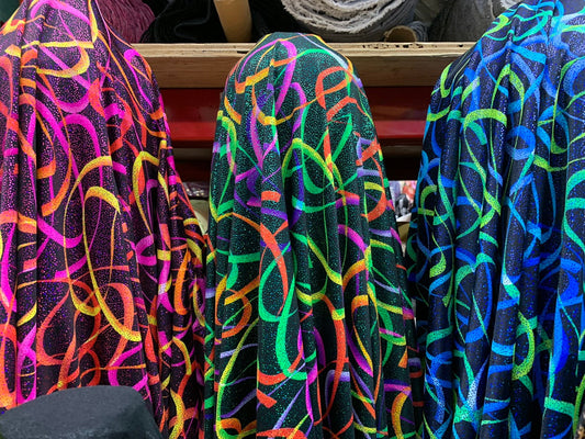 NEW Swirl metallic Hologram design on nylon spandex 4way Stretch 58/60" Sold by the YD. Ships worldwide from Los Angeles California USA
