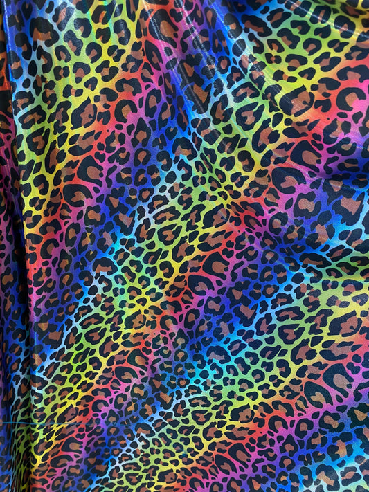 New Exotic leopard design digital foil print lacer hologram print rainbow color print on great quality of nylon spandex 4-way stretch