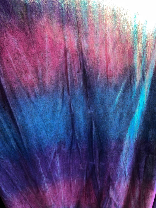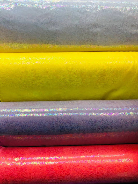 New Iridescent all over foil hologram metallic nylon spandex with all over foil 58/60” Sold by the YD. Ships worldwide from L.A CA