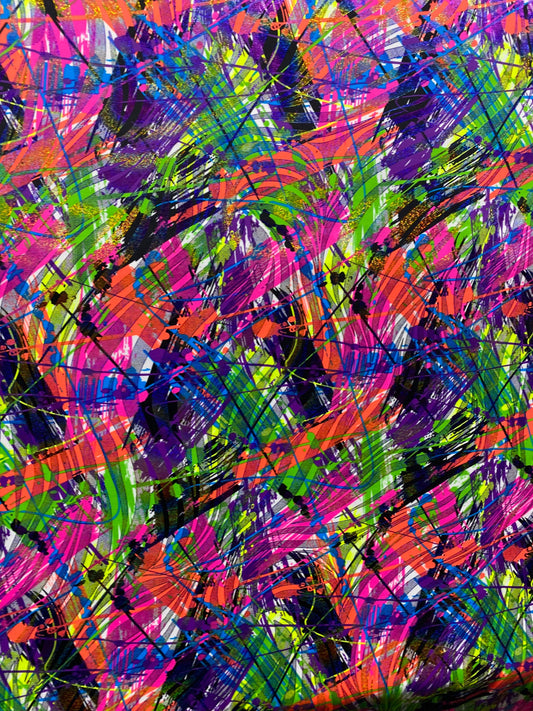 New confetti design with foggy foil heavy nylon spandex 4way stretch 58/60" Sold by the YD. Ships worldwide from Los Angeles California USA.