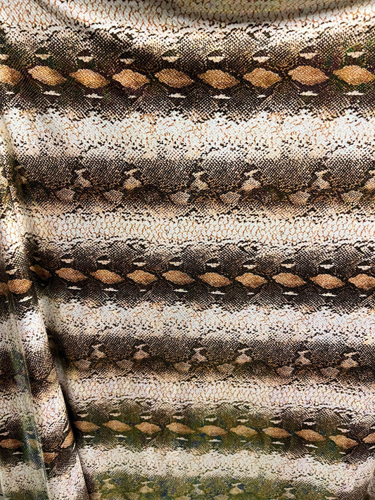 New Anaconda design exotic snake skin design natural ilusión color 2-way stretch metallic nylon spandex 58/60”