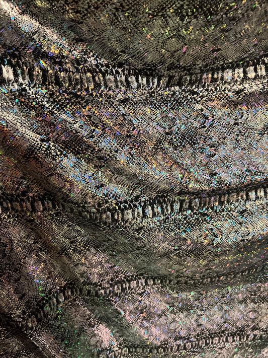 New exotic animal print metallic hologram nylon spandex 4-way stretch 58/60” Sold By the YD. Ships worldwide from Los Angeles California USA