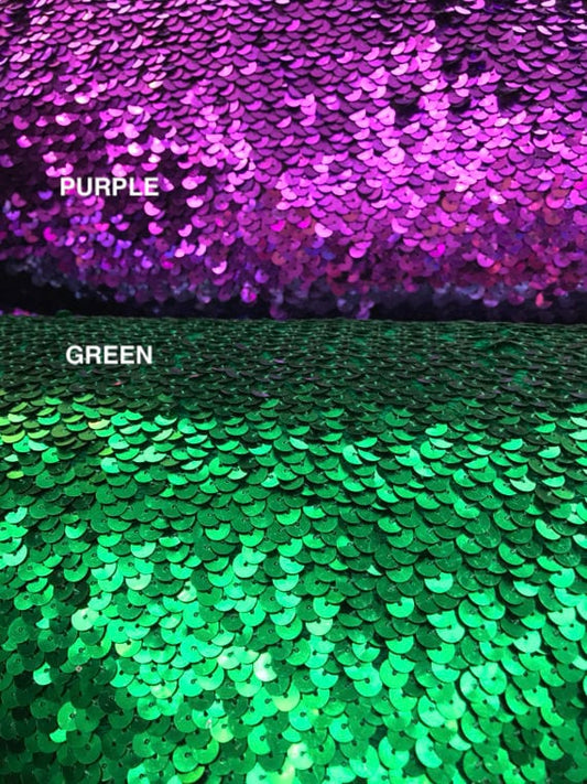 Square hologram sequins on nylon spandex 4-way stretch purple/silver 48/50” Sold by the YD. Ships worldwide from Los Angeles California USA.