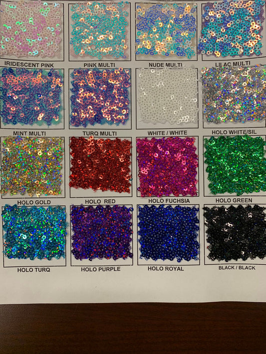 New mini glitz sequins on heavy spandex base 4 way stretch 58/60" Sold by the YD. Ships worldwide from Los Angeles California USA.