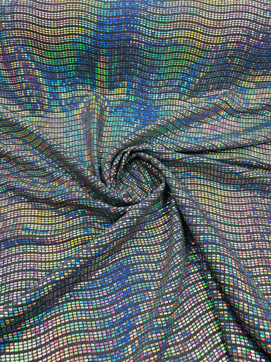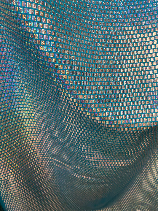 New Rectangular hologram sequins on metallic nylon spandex 2-way stretch 58/60”