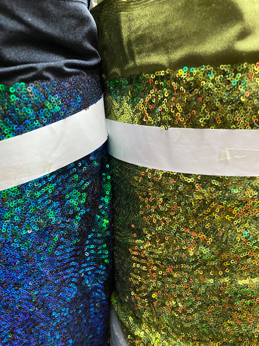 New Ombré hologram sequins on stretch mesh 2-way 2-tone 55/57” Sold by the YD. Ships worldwide from Los Angeles California USA.