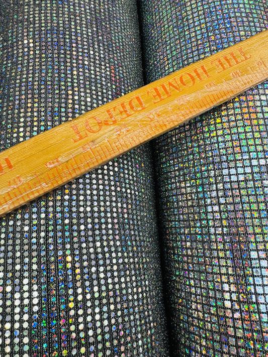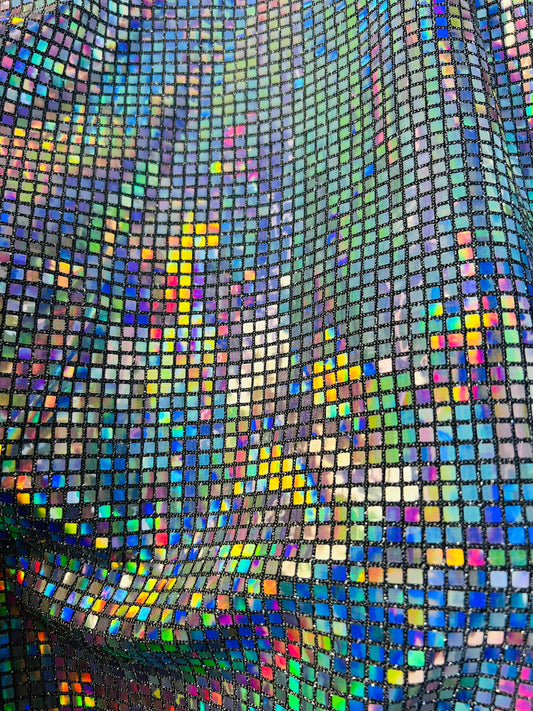 New square hologram sequins 5mm spectrum color on metallic nylon base 2-way stretch 58/60” Sold by the YD. Ships Worldwide from Los Angeles