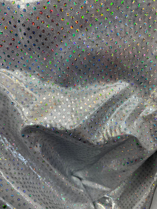 Geometric hologram sequins silver holo all over on spandex metallic base 2-way stretch 58/60” High quality fabrics by AlexLAFabrics